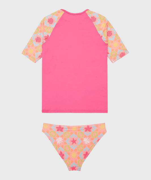 Girls 2-7 Check Short Sleeve Rash Vest Set